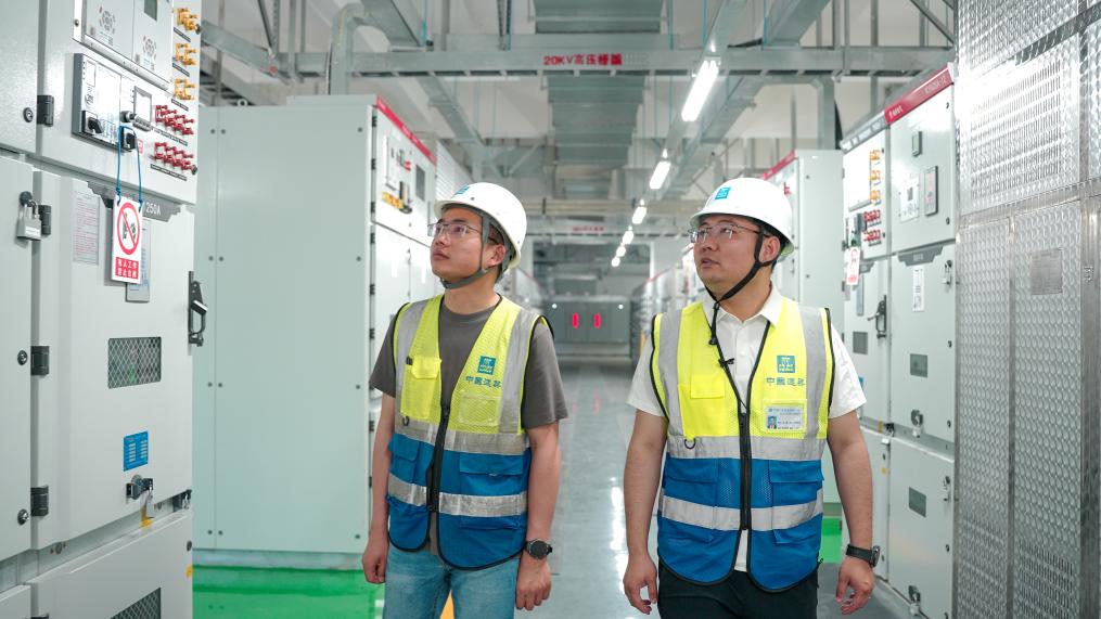工作人员在京东方B8分布式能源EPC总承包项目巡查。