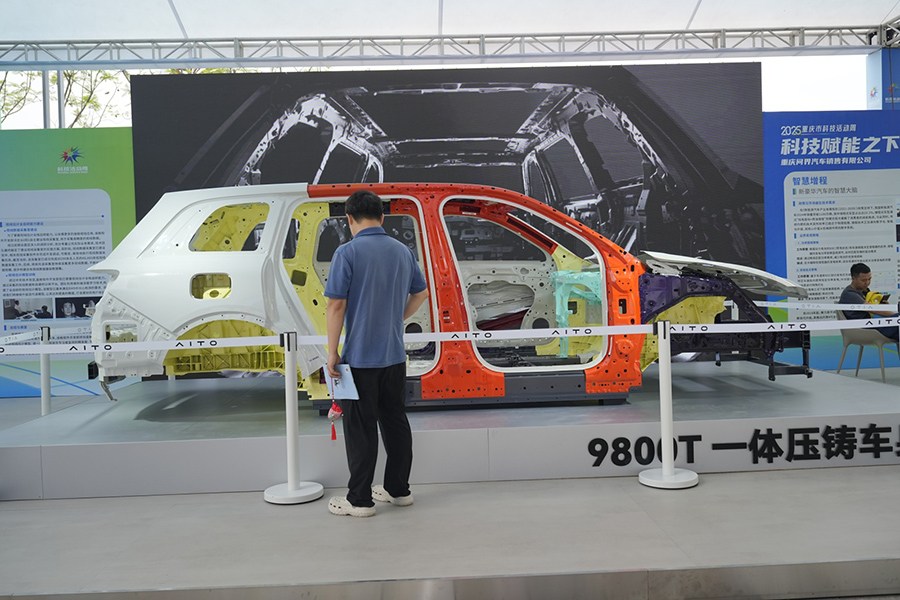 现场展示的“重庆造”新能源汽车压铸车身。