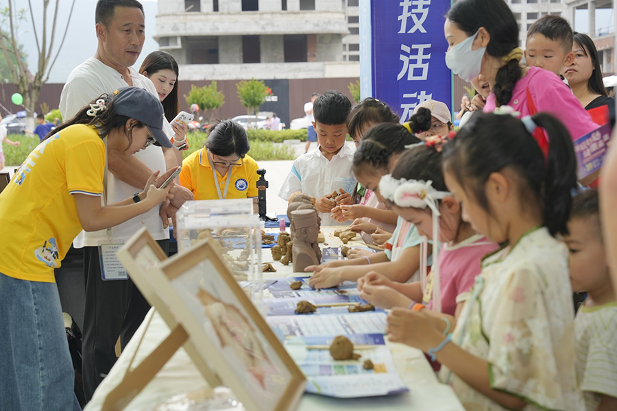 重庆市科技活动周主场活动现场,小朋友们在体验手工制作。