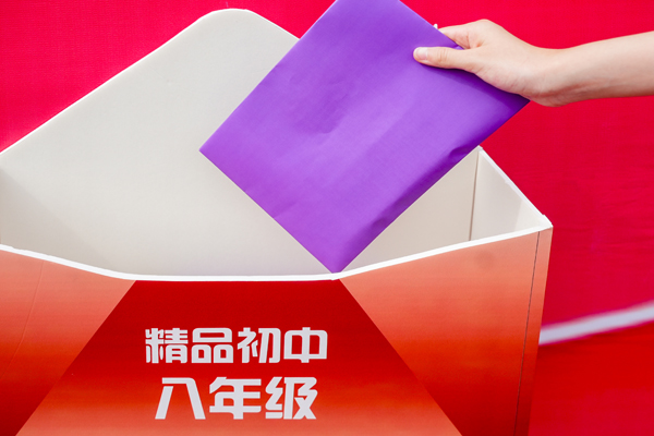 典礼最后,小学部同学们以清澈纯真的嗓音唱响《歌唱祖国》。各年级学生代表依次走向主席台,投放写给未来自己的语录。一张张卡片承载着梦想,一份份承诺汇聚成力量。同学们书写着新学年的目标、对家国的承诺以及对未来的憧憬。