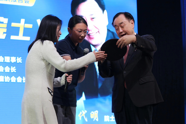 报告会尾声,重庆八中学生代表与周迎春共同向樊代明院士赠送了精心准备的礼物,以此表达全校师生对院士的敬意与感谢。