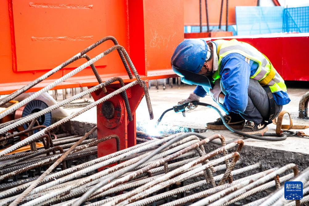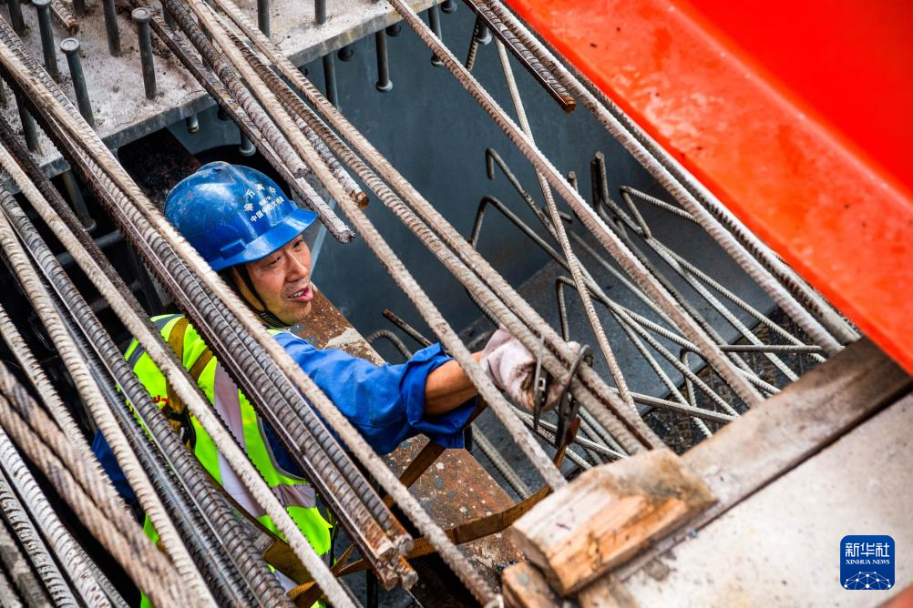 10月17日,工人在渝万高铁石沱长江大桥建设现场施工作业。新华社记者 唐奕 摄