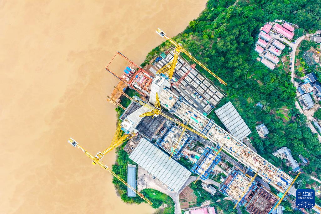 这是10月17日拍摄的渝万高铁石沱长江大桥建设现场(无人机照片)。