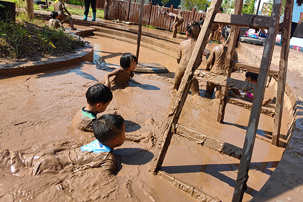 孩子们在“青蛙泥塘”享受泥巴SPA。