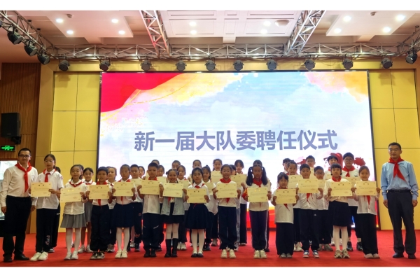 重庆科学城康居西城小学校新一届大队委聘任仪式。
