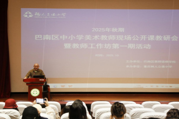 为深化区域美术教育改革,提升美术教师的专业素养与教学指导能力,10月21日,巴南区中小学美术教研会在重庆树人立德小学举行。本次教研活动以“聚焦核心素养,创新艺术实践”为主题,通过校园文化浸润、专题讲话、实战观摩与名师引领等多种形式,为全区美术教师带来了一场内容丰富、实效性强的学术盛宴。
