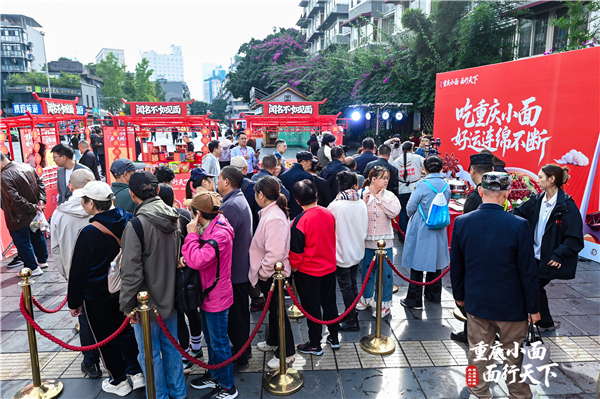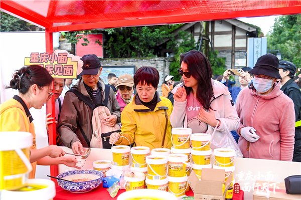 为撬动城市年轻消费市场,在四川大学锦城学院,重庆小面互动快闪站吸引大量师生驻足。师生们通过参与游戏互动、试吃体验,深入了解重庆小面文化。“辣而不燥、回味悠长,我要推荐给室友!”一名学生试吃后被重庆小面“圈粉”。