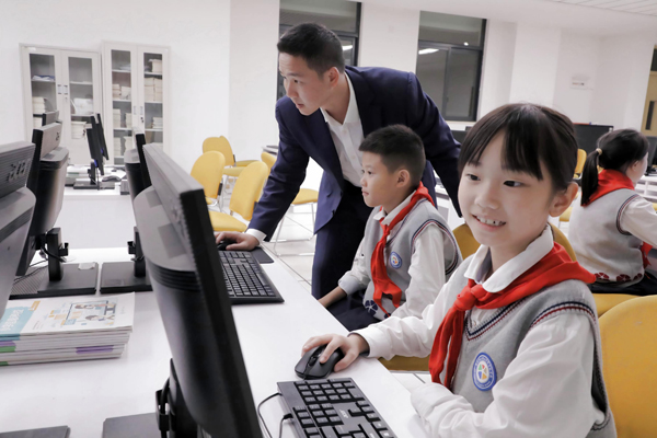 在“STEAM创客课程”,同学们兴趣十足地操控着智能设备。