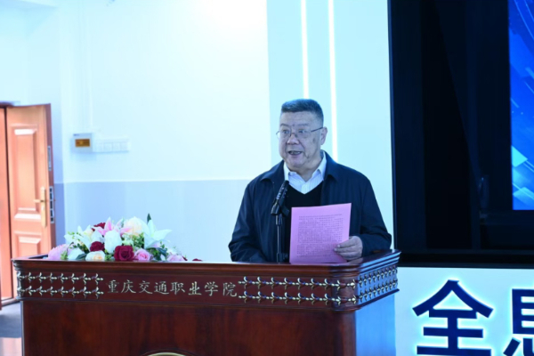 重庆交通职业学院校长梁乃兴在致辞中表示,学校始终坚持“立足交通、面向市场、服务社会”办学定位,推动学校内涵式发展,不断提升育人质量,为社会培养输送了一批又一批高素质技术技能人才。大会围绕“深化产教融合,服务区域发展”主题,旨在凝聚共识、汇聚合力,助力职业教育服务区域经济社会发展、赋能产业升级。学校将精心组织安排,全力做好服务保障,确保大会成功,并愿以此次大会为新起点,与各方携手,共同推动职业教育发展。