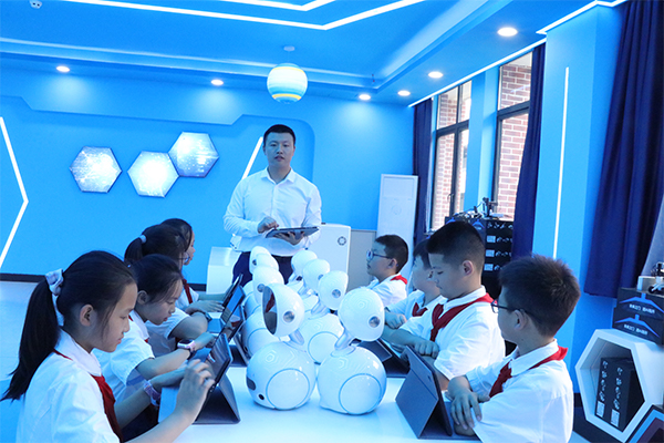智慧课堂上,教师正在指导学生更好了解“机器人”。