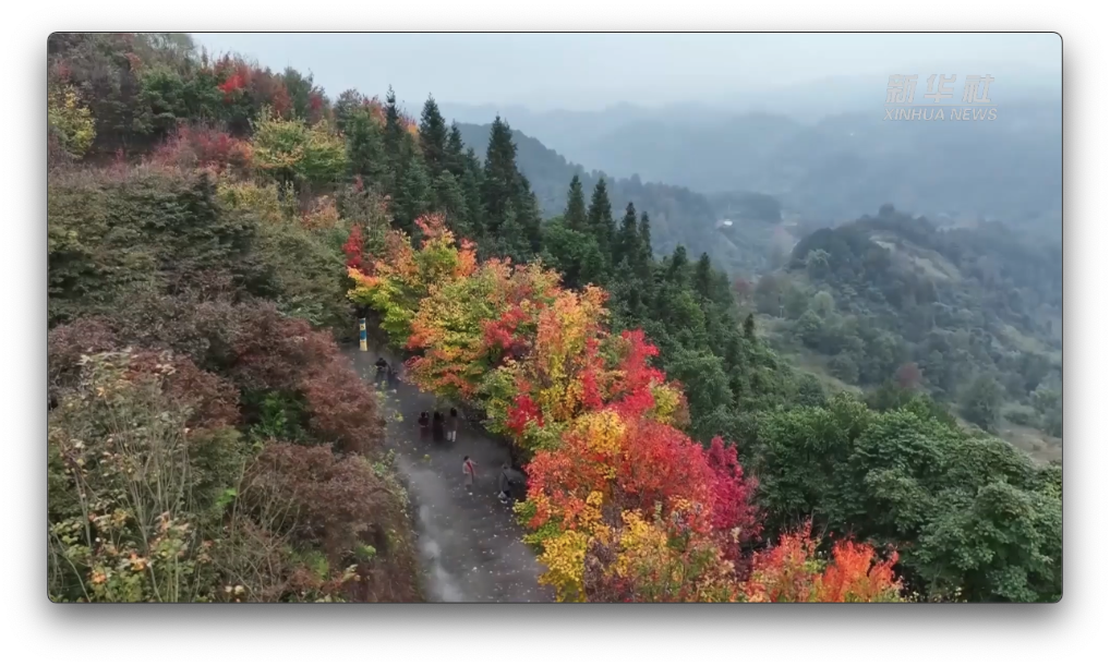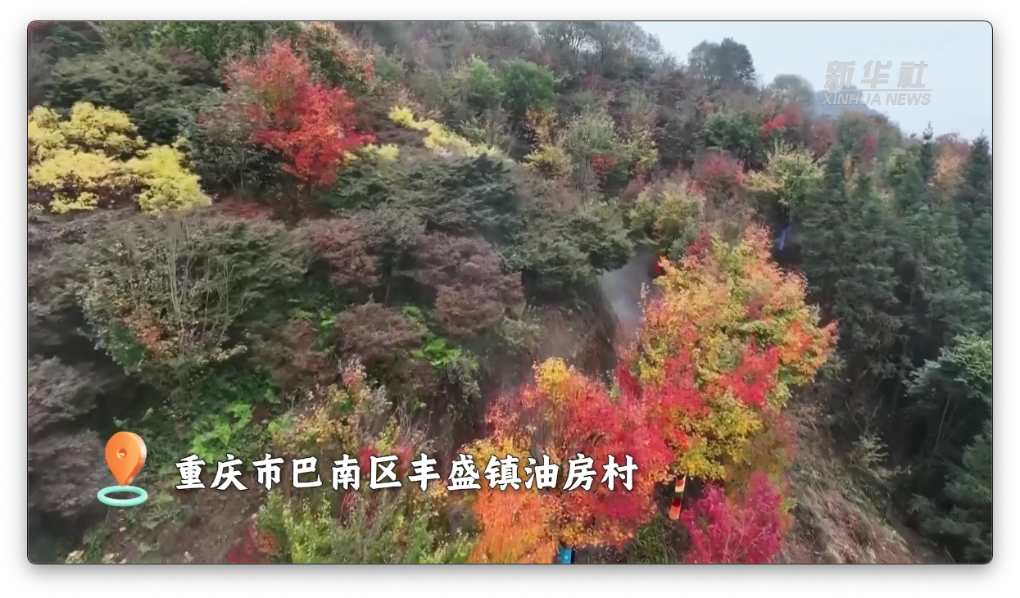 秋冬之交,重庆巴南区丰盛镇油房村的彩色森林进入最佳观景期,观光步道一路彩色相伴,引来不少市民、游客感受初冬的浪漫。