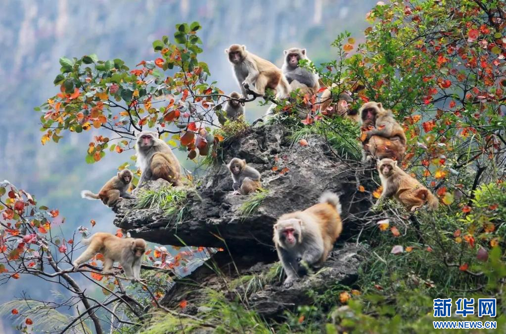 巫山小三峡的野生猕猴。新华网发(巫山县文化和旅游委供图)山上有猕猴
