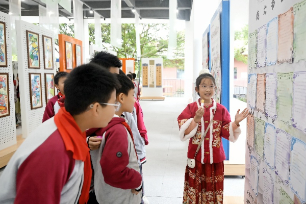 11月17日,重庆市为明学校书院小学光合艺术空间墨香四溢,琴韵悠扬,“童心书语 笔墨生香”汉字美育展在此启幕。活动深度融合语文、美术与书法艺术,为学生搭建了一个理解、传承与创新中华优秀传统文化的综合性美育平台。