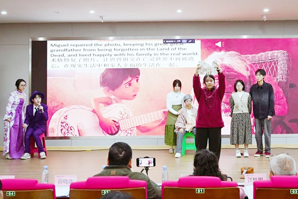 同学们在动画电影《寻梦环游记》中,温情诠释了亲情与梦想的深刻哲理。