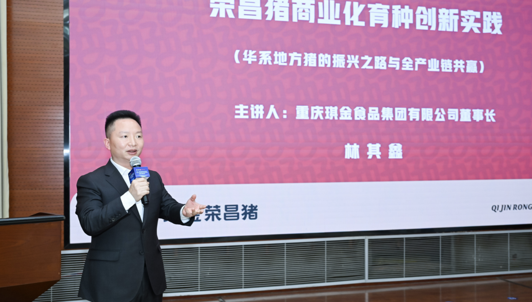 现场,中国农业大学教授、中国畜牧兽医学会养猪学分会理事长王楚端,重庆市生猪产业技术体系创新团队首席专家、重庆市畜牧技术推广总站研究员陈红跃,重庆(荣昌)生猪大数据中心主任秦友平,湖北省农业科学院党委委员、副院长梅书棋,四川农业大学动物遗传育种与繁殖专业博士、昆洲科技有限公司董事长杨喜堤,琪金集团董事长林其鑫,分别围绕“中国地方猪种育种目标探讨”“地方猪(荣昌猪)高质量发展路径思考”“大数据赋能生猪产业高质量发展”“硒都黑猪新品种培育及其产业化开发”“人工智能驱动地方猪育种评估方法与表型测定融合创新”“荣昌猪商业化育种创新实践”等话题,作主旨报告。