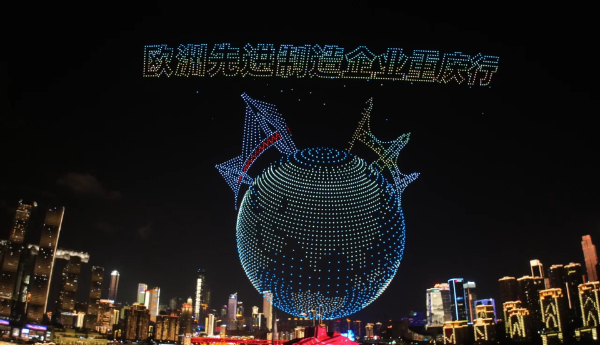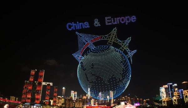 11月18日晚,“欧洲先进制造企业重庆行”专场活动之一的“新韵重庆”无人机灯光秀举行。