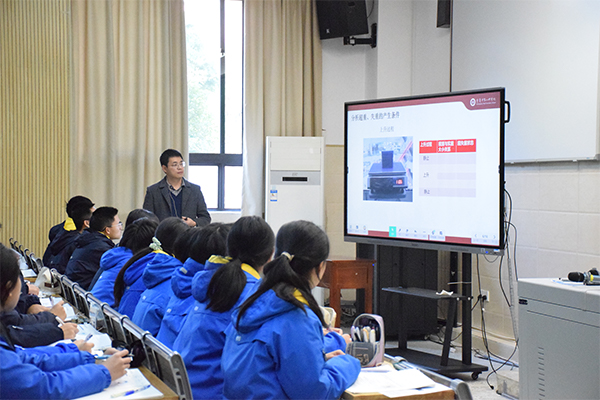 同课异构环节,重庆八中物理教师王馨授课《超重与失重》。