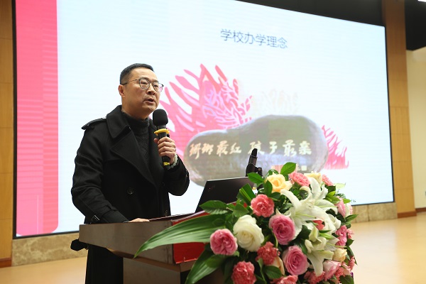珊瑚实验小学校长胡庆作课改成果汇报。