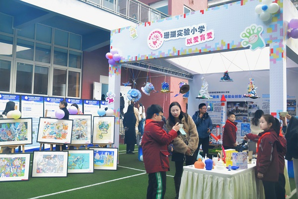 珊瑚实验小学的学生向参会人员进行课程成果展示。
