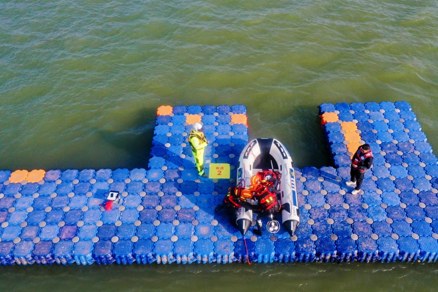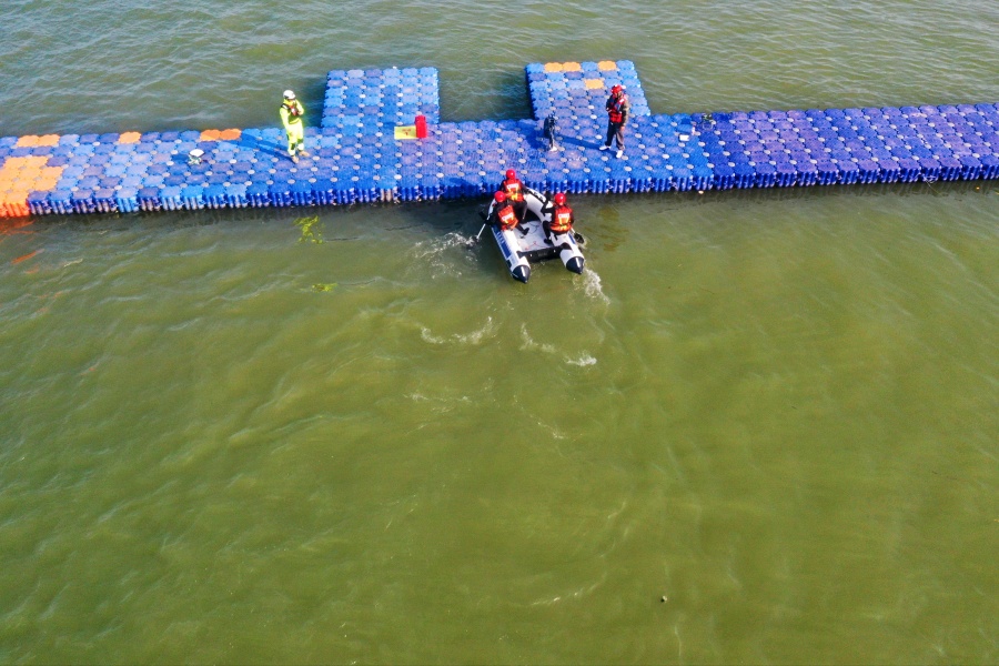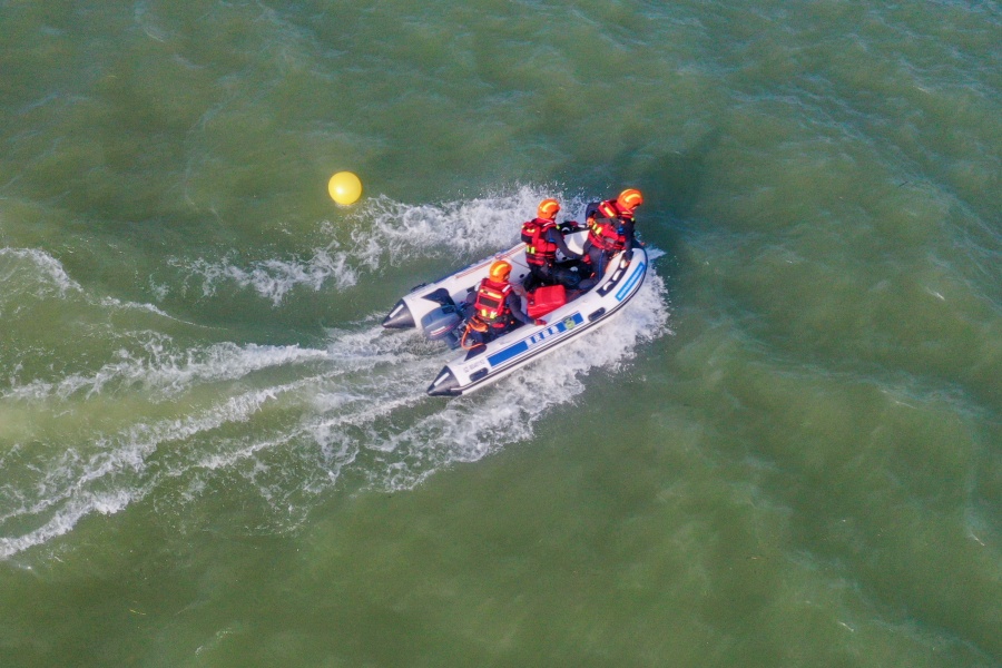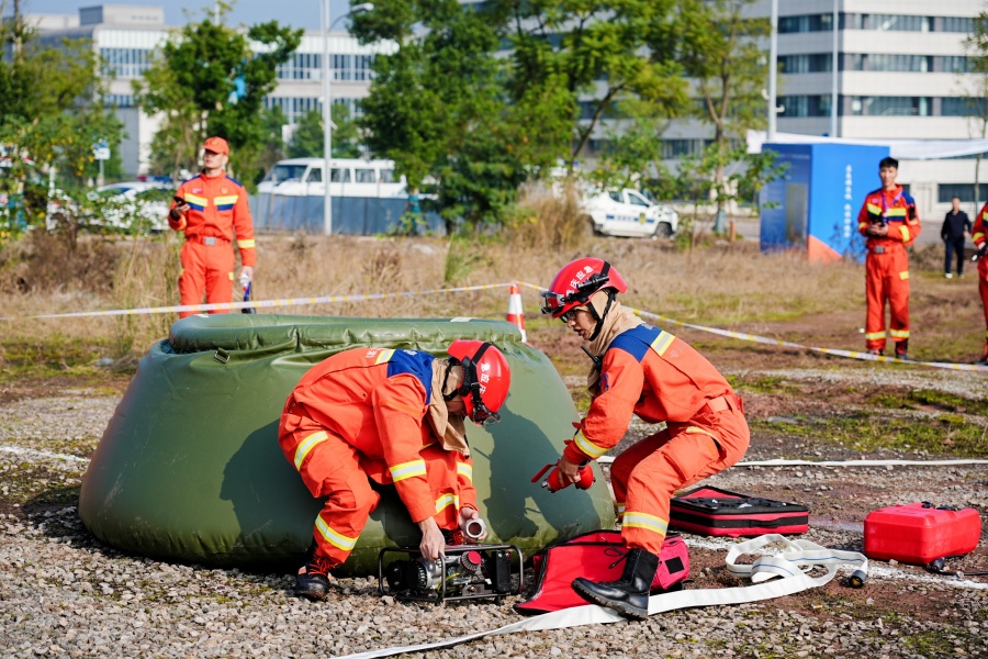 ↑洪涝灾害实战救援行动竞赛科目。