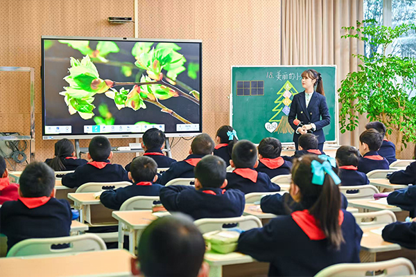 当日上午,马家堡校区报告厅接连开展四节展示课:三年级英语课《Unit5 The colourful world》中,刘文焱老师以“色彩”为线索,通过情景对话、小组合作、趣味手工等方式让学生在互动中掌握知识;同年级语文课《美丽的小兴安岭》上,姜格格老师借助优美的音乐和精美的画面,声情并茂的讲解引导学生感知文本里的自然之美;五年级科学课《点亮小灯泡》中,邓佳佳老师带领学生自主设计电路、动手实验,在实践中理解科学原理,播下科学求知的种子;二年级数学课《身体上的尺》里,罗悦天老师让学生用“手拃”“步量”等方式建立长度概念,课堂充满生活趣味。学生们主动探究、大胆表达的状态,让家长们也拿出手机频频记录课堂细节。