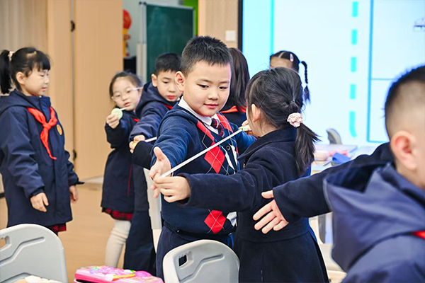孩子们参与课堂互动,协作探索。