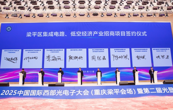 12月11日,2025中国国际西部光电子大会(重庆梁平会场)暨第二届光显示大会在重庆梁平开幕,重庆航天职业技术学院梁平校区、LED设备研发及制造项目等一批项目签约落户梁平。