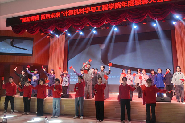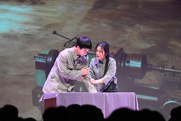 重理工学子全程自主创排的原创思政话剧《士继匠心》首演现场。