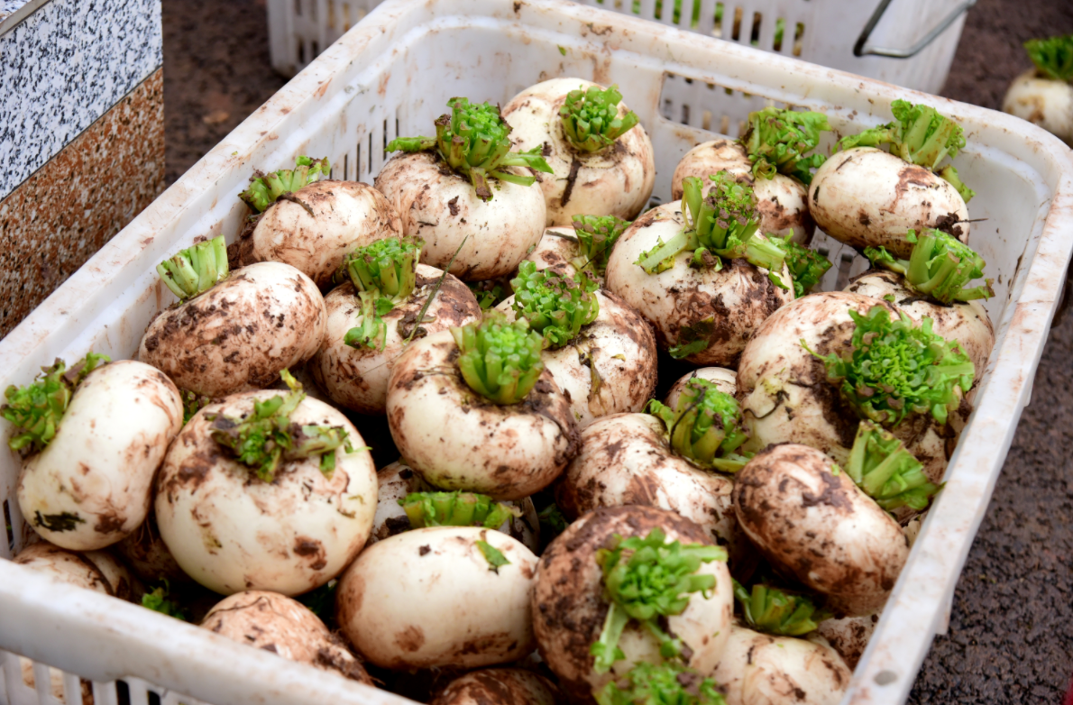 草蔸萝卜皮薄肉嫩、味甜化渣。(杨晨 摄)