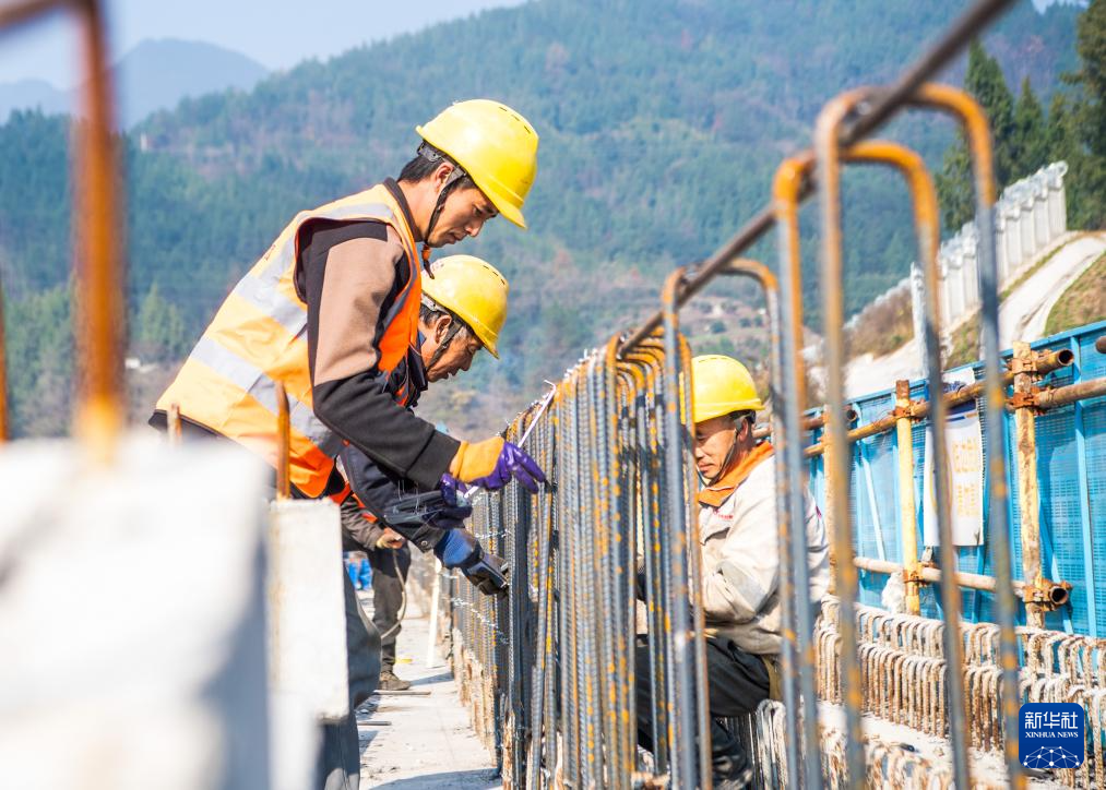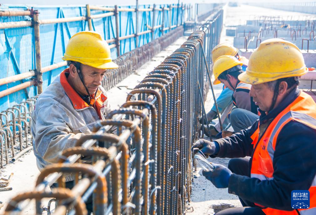 12月27日,工人在西渝高铁赵家普里河特大桥建设现场施工作业。新华社记者 唐奕 摄
