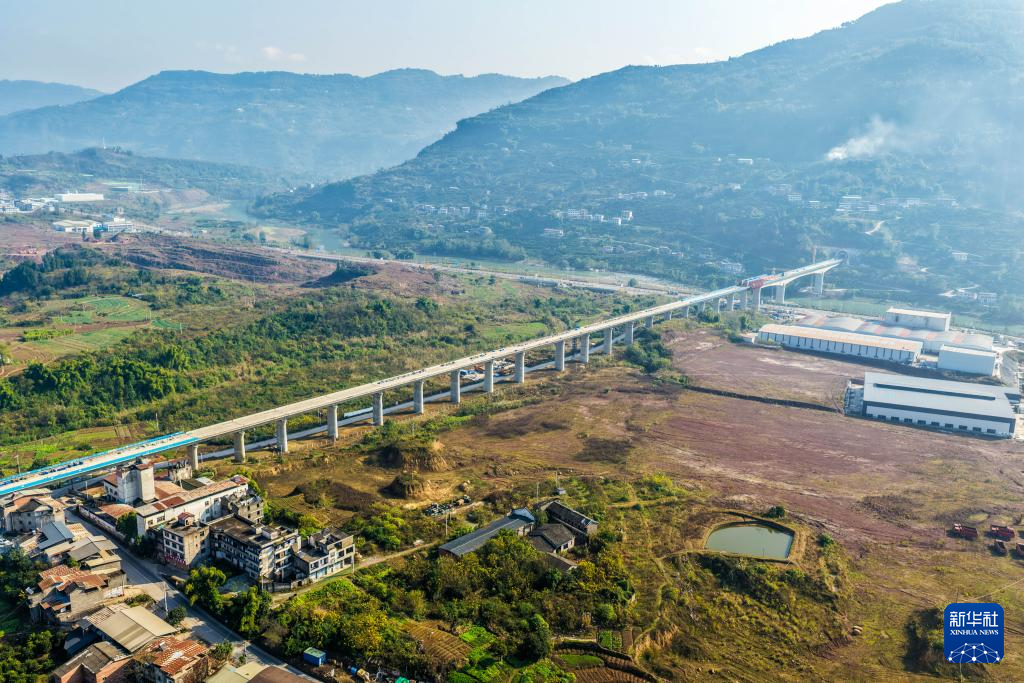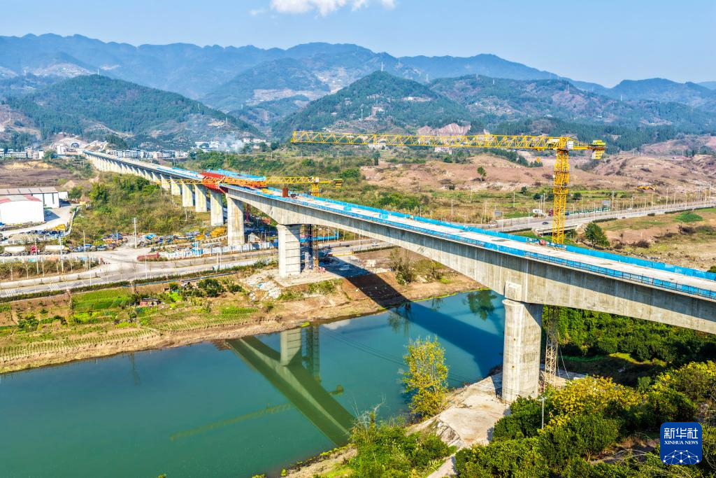 这是12月27日拍摄的西渝高铁赵家普里河特大桥建设现场(无人机照片)。新华社记者 唐奕 摄