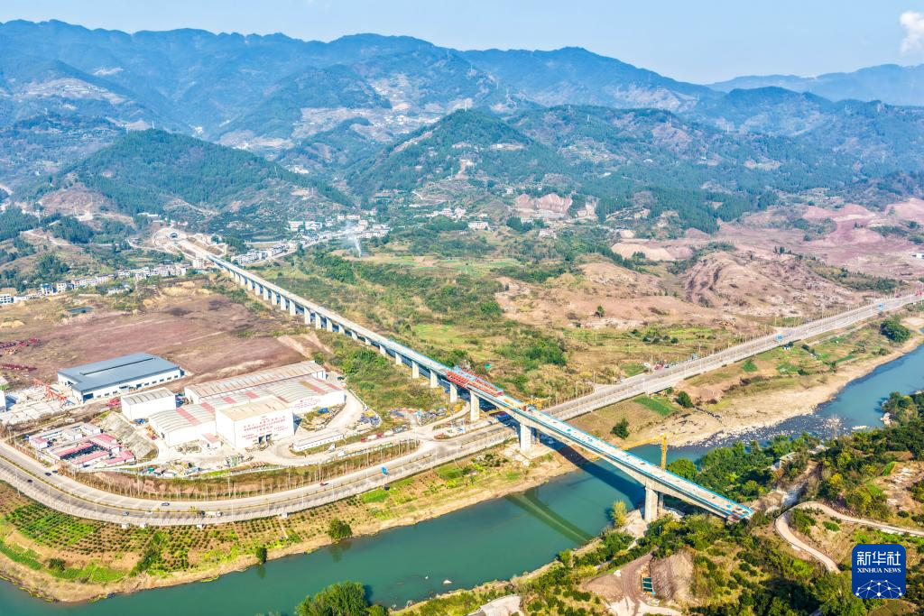 当日,西安至重庆高速铁路(西渝高铁)赵家普里河特大桥完成最后一孔移动模架现浇梁浇筑作业,实现全桥合龙。
