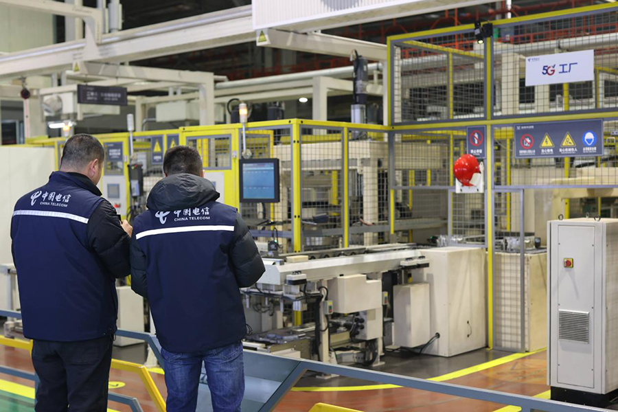 重庆电信工作人员为宗申动力工厂调试网络。重庆电信供图