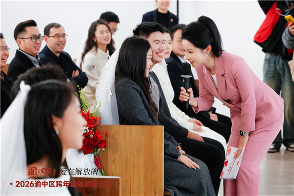 12月31日,一场温馨的跨年集体颁证仪式在渝中区解放碑CBD婚姻登记中心举行。10对新人选择在这一天登记结婚,以“双新”之喜——新年与新家,共同开启人生的崭新篇章。