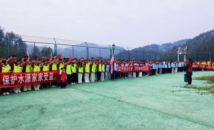 “钟灵水库1956年动工,1978年建成蓄水,历时20余载。建设期间,周边群众自带工具、义务投工,以肩挑背扛的原始方式,攻坚克难筑起水利屏障。如今,这座总库容达3230万立方米的水库,不仅是秀山县城及周边乡镇的重要水源地,保障着灌区及县城25万人的饮水安全,更在防洪、灌溉、发电等方面发挥着不可替代的综合效益”,在水库堤坝上,校史教师为学生们深情讲述这座“生命之库”的建设历程。