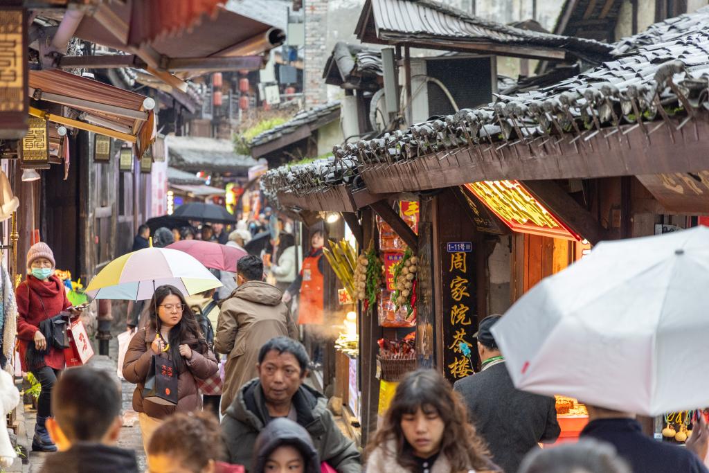 2026年1月1日,游客在重庆磁器口古镇参观游览。