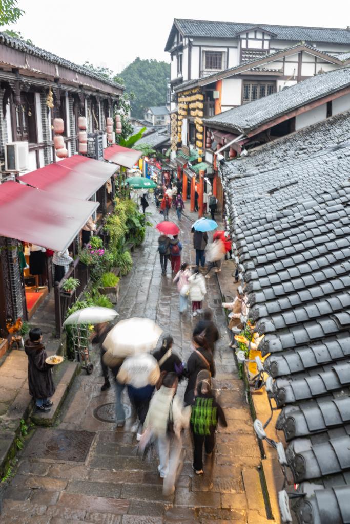 元旦假期,位于重庆市沙坪坝区的磁器口千年古镇举行古镇集市、山海经主题灯饰等主题活动,吸引众多游客前来参观游览。