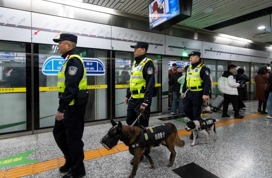 此外,轻轨沿线各站点也加强了警力部署,民警携警犬开展巡逻执勤,细致排查站点及车厢内安全隐患。