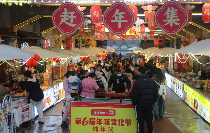 作为本次消费季的核心支撑,已于冬至启幕的第六届年味文化节延续六年品牌积淀,以“商旅融合”为内核升级呈现。活动期间,年猪巡游祈福仪式传递满满年味,涪陵黑猪肉制作的刨猪汤、红酒猪排宴等特色年宴香气四溢,搭配景区自酿红酒,让游客在舌尖品味地道乡愁;赶年集市上,本地特色农产品、非遗手工艺品与乡村文创琳琅满目,延续“免费年宴”传统的同时,实现从百人小宴到千人大宴的规模升级,成为农商文旅融合的典型范例。依托全国“万企兴万村”优秀案例的产业基础,景区通过“政府+公司+项目+村民入股”模式,让村民化身经营者与受益者,在家门口乡村振兴集市分享农文商旅消费红利。
