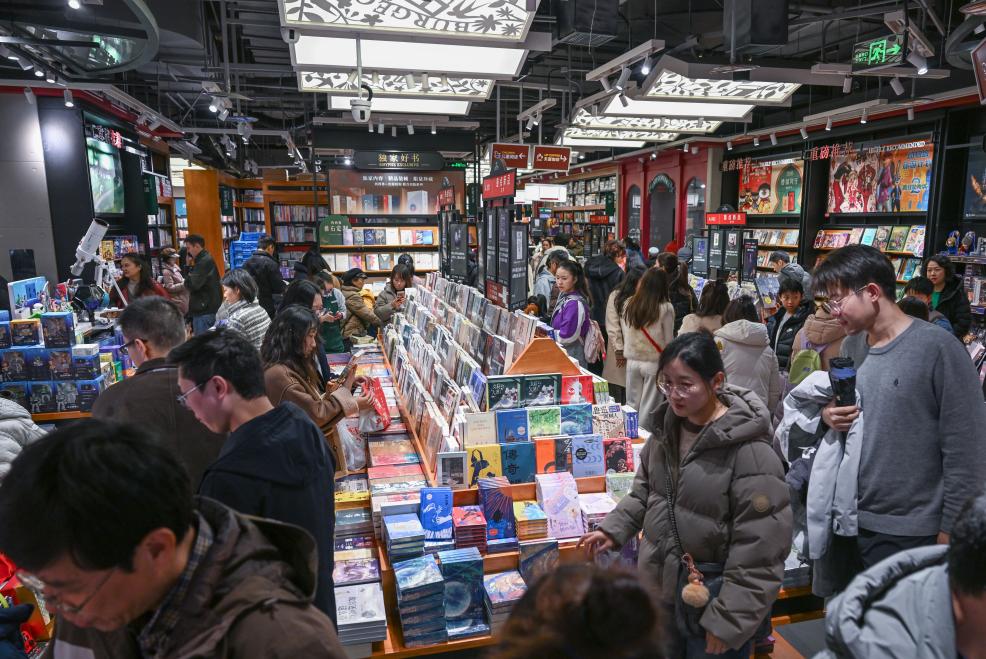 1月2日,市民在重庆两江新区一商场内书店选购图书。