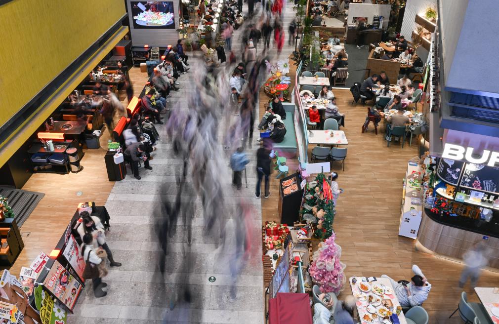 元旦假日期间,重庆各大商圈与商业街区客流量显著增加,不少市民选择前往商场购物、用餐、休闲娱乐,消费市场人气旺。