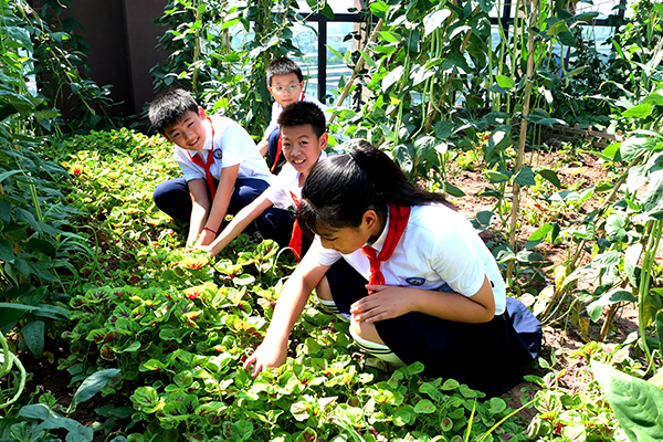 在璧山高新小学教学楼楼顶,一片约800平方米的“空中菜园”郁郁葱葱。这里是各班承包的“责任田”,孩子们在劳动课及课间播种、浇水、除草,看着白菜、蒜苗、香葱、萝卜、茼蒿菜等等一点点长大。收获时节,他们亲手采摘带回家,做成一道菜和家人分享。据了解,在璧山,每所中小学都有自己的一块田或者一片园作为劳动基地。