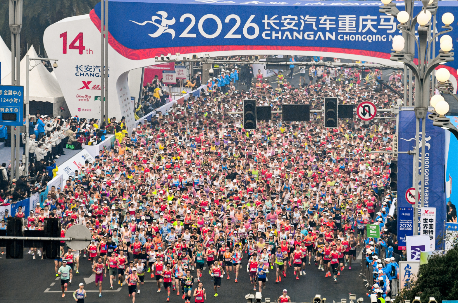 1月18日,2026长安汽车重庆马拉松在重庆南滨路、巴滨路鸣枪开赛,来自全球各地的25000名跑友齐聚山城重庆,以赛阅城,用脚步丈量这座城市的山水之美和人文之韵。