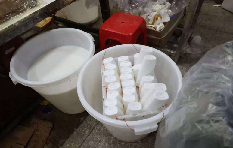 黑工厂用于生产伪劣日化品的“原材料”。重庆市涪陵区公安局 供图