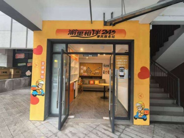 在重庆市九龙坡区黄桷坪街道邮电支路社区,涂鸦街的喧嚣背后,藏着一个十二平方米左右的安静角落——“渝里相伴”24小时便民服务站。