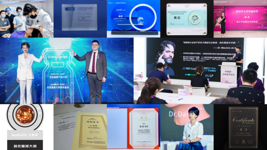 戴霞医生的技术是各大高端品牌争相认证的“金标准”。她几乎囊括了所有高端材料品牌的首席注射导师身份,被誉为“导师大满贯”: