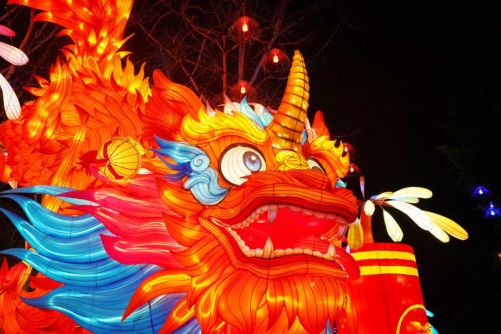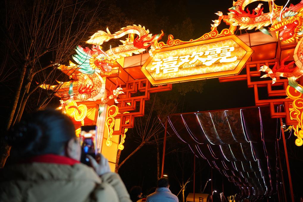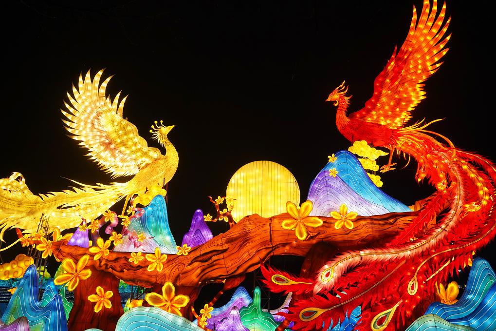 据了解,本次灯会依托两江新区园博园内千亩水域优势,沿湖2.8公里动线串联起“幻彩迎新”“纳祥启福”“家国同辉”等六大主题区,共设置灯组约2000件,灯笼挂件6000余个,其中15个大型灯组各具特色。