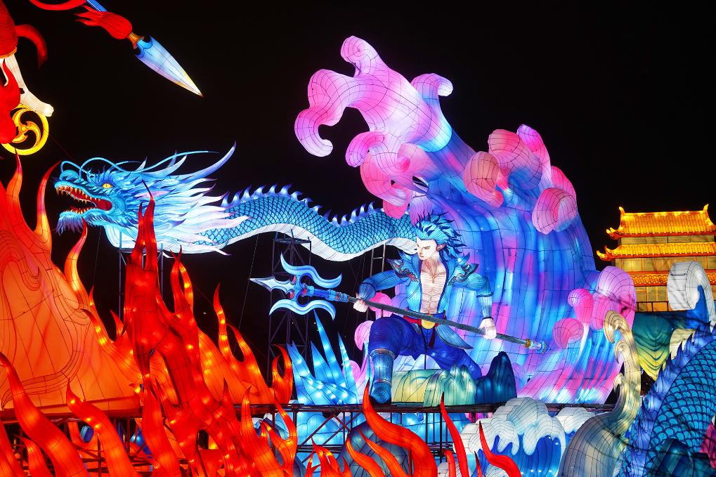 图为表现“哪吒闹海”场景的灯组。彭博摄