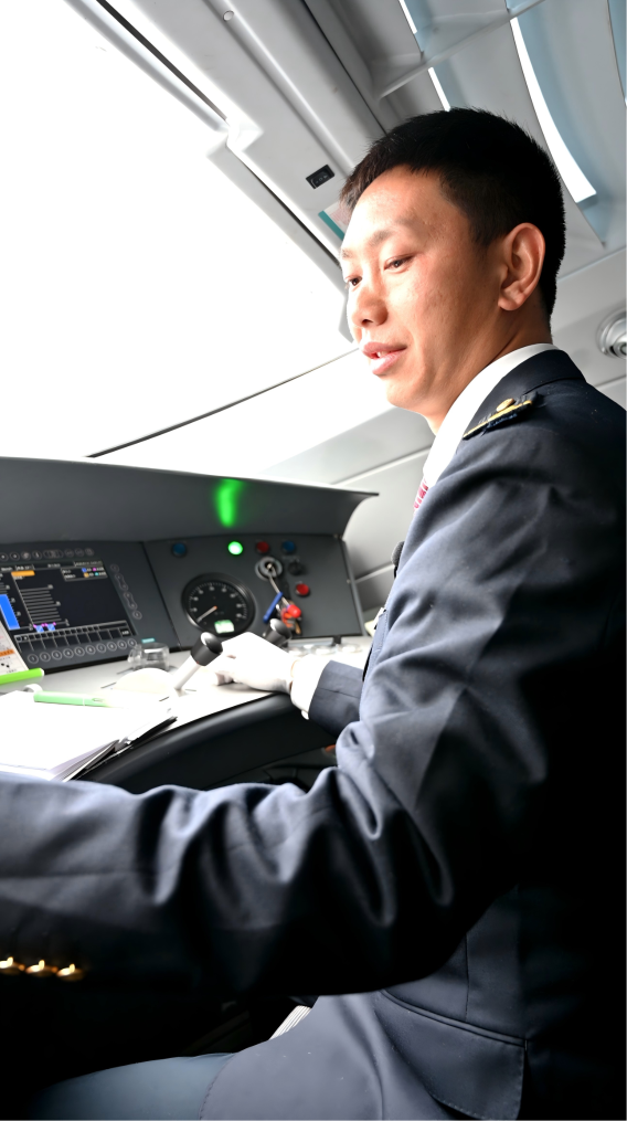 同一时间,司机室内各类仪表指针平稳指示,监控屏幕上运行数据实时跳动。重庆机务段动车组司机王水印身着制服,正端坐在驾驶位上,一边反复核对高压、牵引、制动等系统参数,一边在工作日志上认真记录。