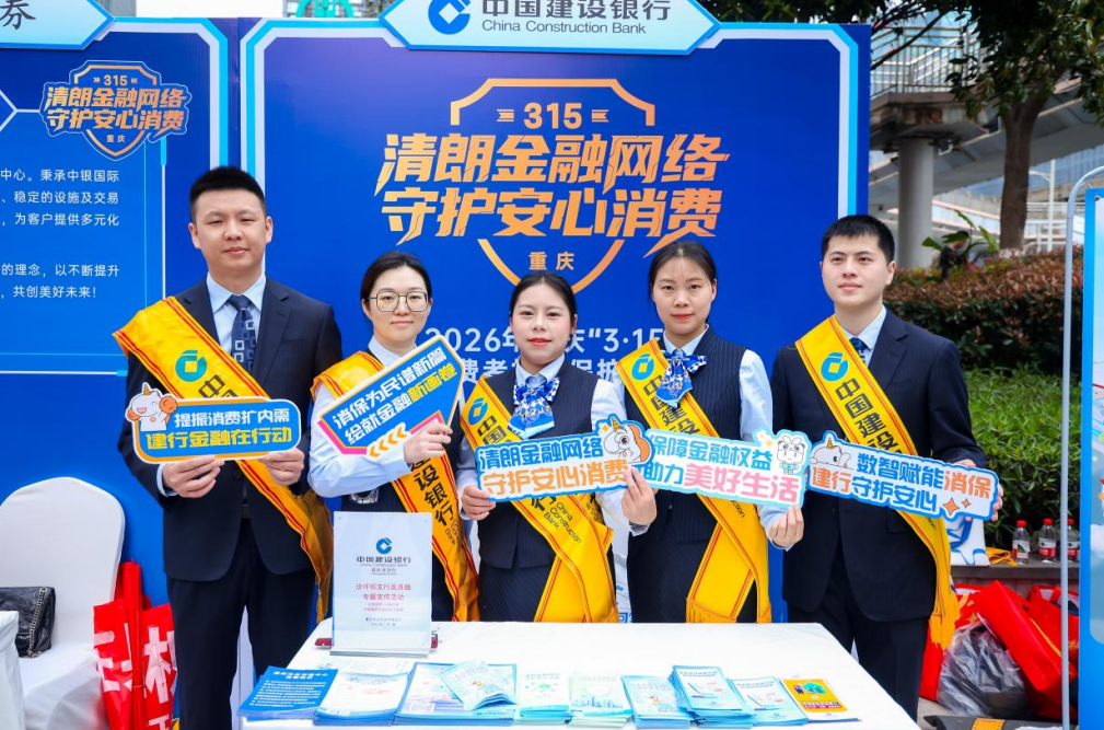 3月13日,重庆市2026年“3·15”金融消费者权益保护教育宣传活动在两江新区叠彩中心正式启动。本次活动以“清朗金融网络 守护安心消费”为主题,拉开了全市金融消保教育宣传活动序幕,建行重庆市分行在现场布展积极参与。